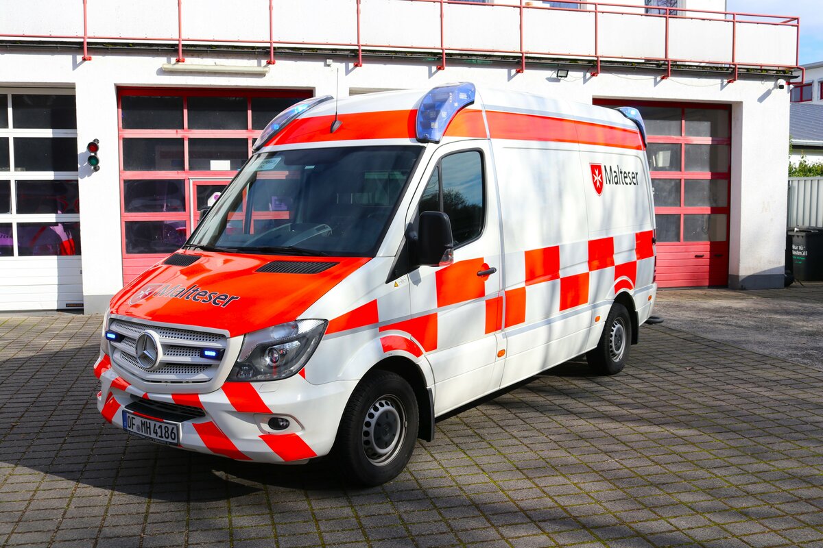 Malteser Hilfsdienst Stadt und Kreis Offenbach Mercedes Benz Sprinter RTW (Johannes Offenbach 41/85-1) am 02.03.24 bei einen Fototermin. Danke für das tolle Shooting