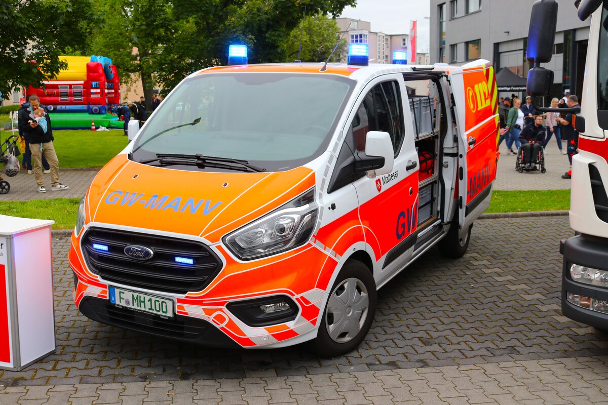Malteser Ford Transit GW-MANV am 05.05.24 in Frankfurt beim Tag der offenen Tür der Wache 3