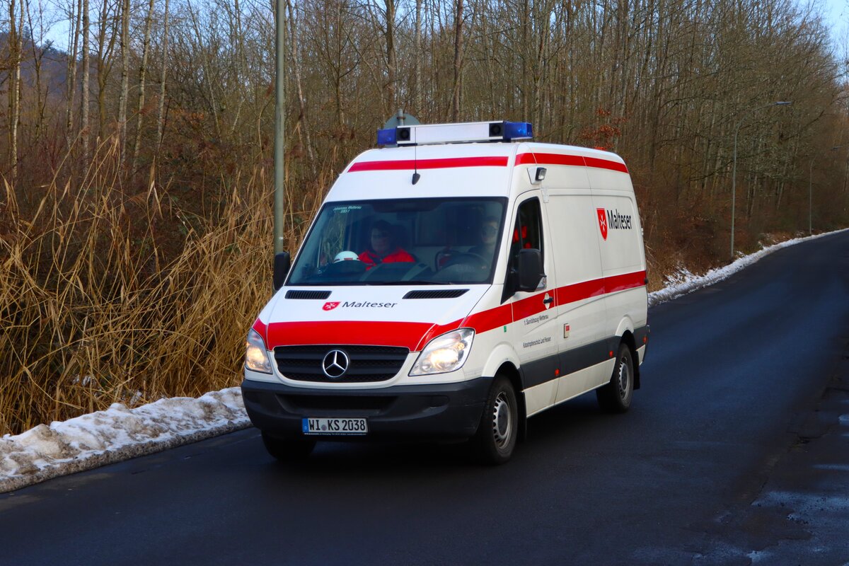 Malteser Oestrich-Winkel/Rheingau-Taunus-Kreis Mercedes Benz Sprinter RTW 12/83 am 04.05.25 beim Tag der offenen Tür der Feuerwehr Rüdesheim