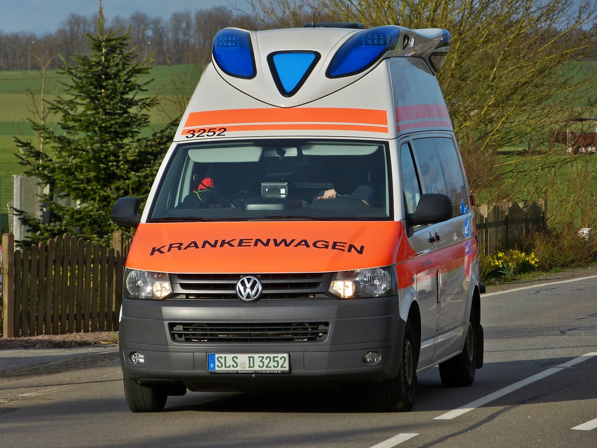 . VW T5 Krankenwagen gesehen am 02.04.2015 nahe Saarlouis.