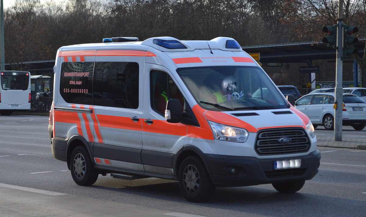 Ein FORD Transit Krankentransportfahrzeug der Fa. Krankentransport Stahl GmbH aus Berlin am 10.01.20 Berlin Marzahn.