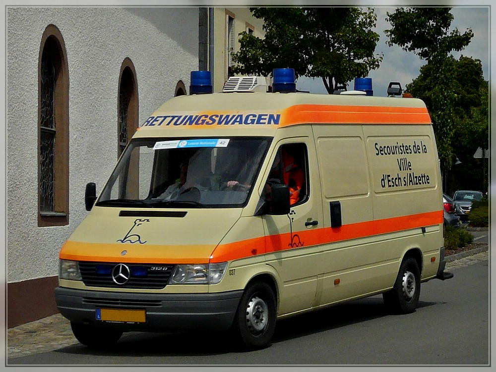 M-B 312 D Rettungswagen am Schluss des Radfahrer Trosses der Skoda Tour de Luxembourg am 04.06.2011.
