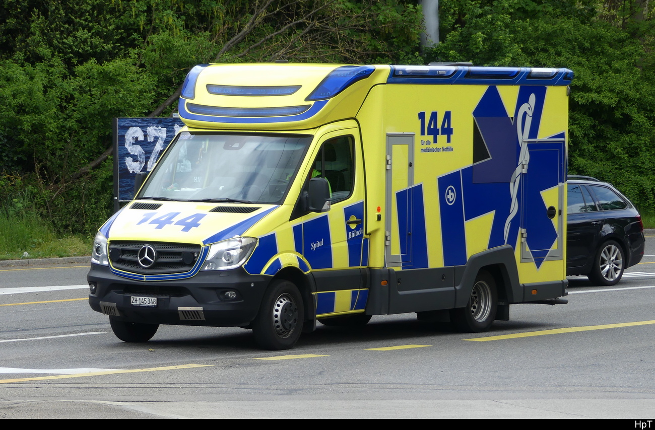 Mercedes Rettungswagen unterwegs in der Stadt Zürich am 13.05.2023