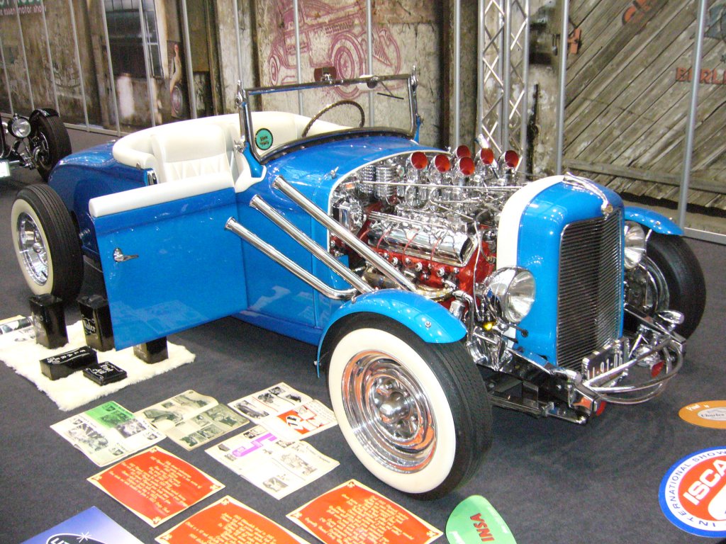 Hotrod auf Basis eines 1932´er Plymouth. Dieser Hotrod wurde in den 1960´er Jahren aufgebaut. Motorisiert ist diese "Fahrmaschine" mit einem 324 cubic inch Motor aus einem 1956´er Oldsmobile. Essen Motor Show am 29.11.2011.