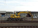Spitzke Gleisbau Liebherr 922 Rail am 14.03.17 in Gelnhausen Bhf vom Bahnsteig aus fototgrafiert