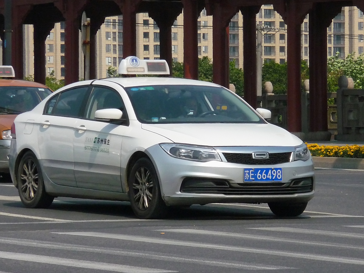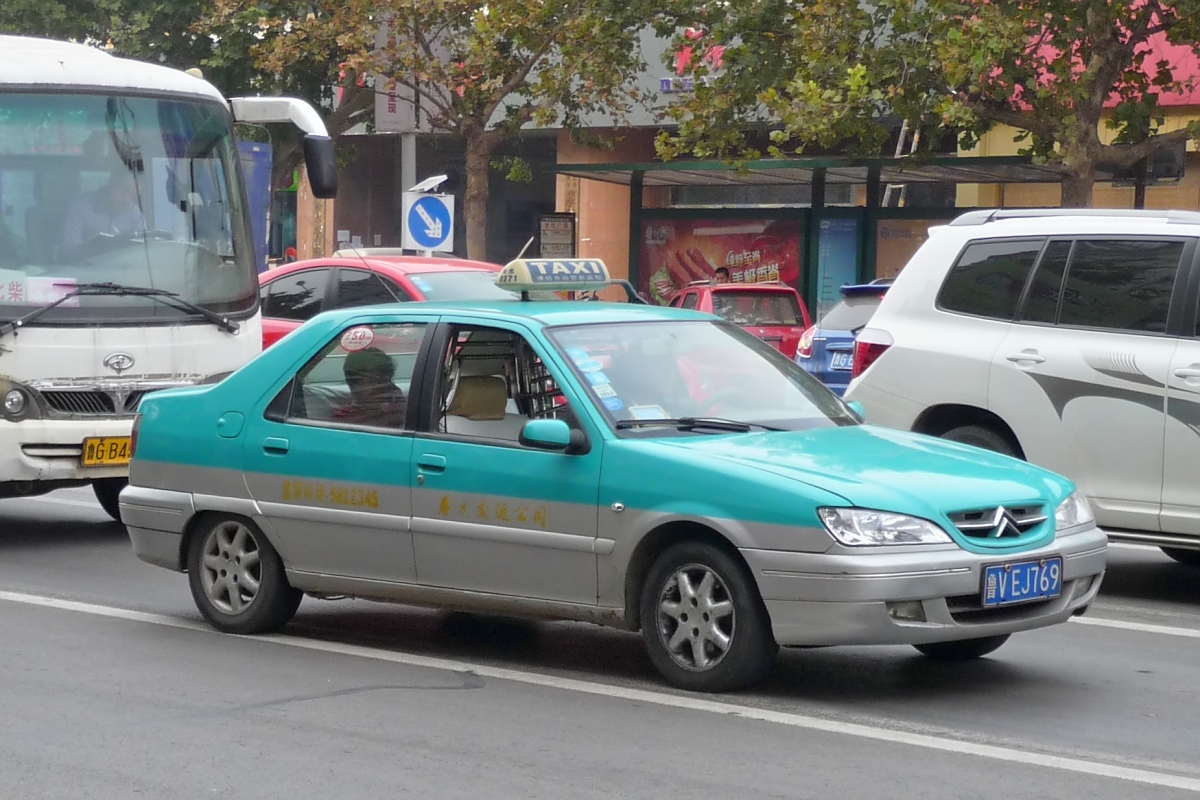 Vor den Toren der Altstadt von Zou Zhujang wartet ein Taxi VW Santana Vista. Gesehen am 28.10.2014.