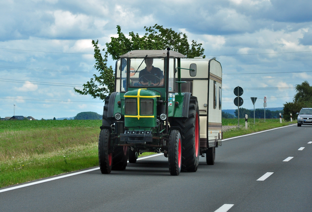 Deutz Traktor mit Wohnwagen  am Haken , bei Nörvenich 07.08.2011