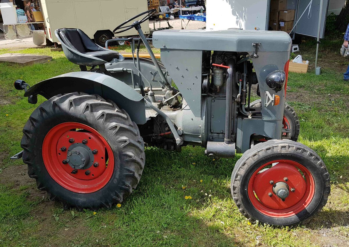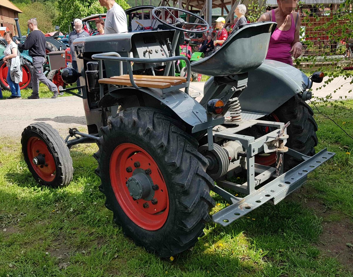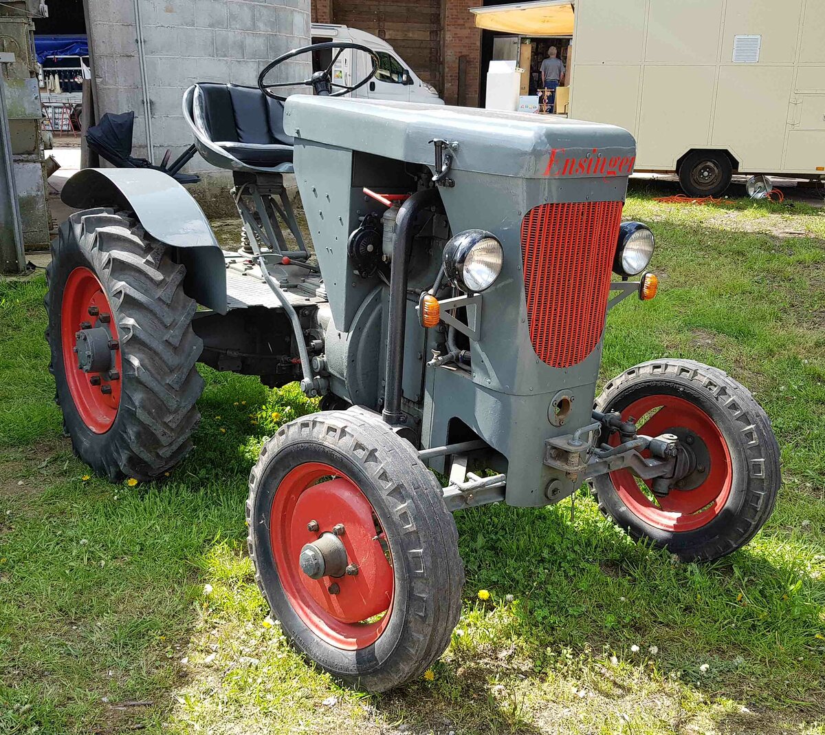 =Ensinger steht auf dem Ausstellungsgelände der Traktorfreunde Wiershausen am Klostergut Hilwartshausen, 05-2023