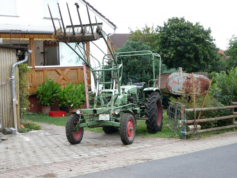 Fendt GT mit angebauter Ladegabel nach getaner Arbeit am 02.08.08 in 36100 Petersberg - Marbach