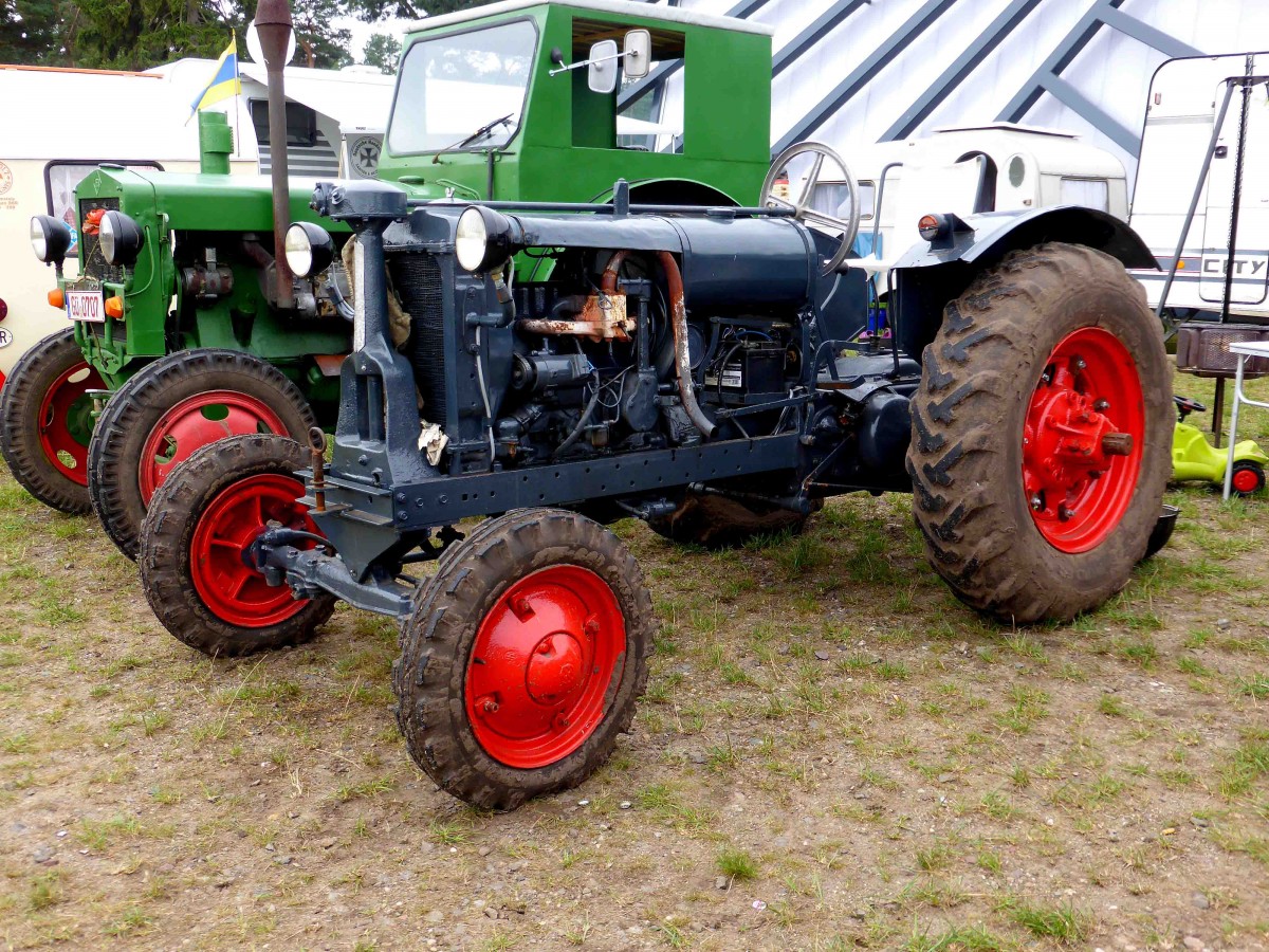 MC Cormick steht bei der Oldtimeraustellung im Agroneum von Alt Schwerin im August 2014