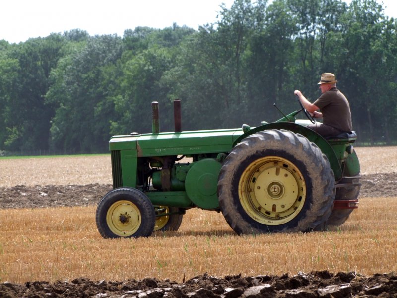 JohnDeere bei einer "Inspektionstour" zwischen den Ackerfurchen in Antiesenhofen; 080810