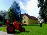 =Frontemblem des Pampa, Bj. 1954, 10338 ccm, 55 PS, gesehen bei der Traktorenaustellung der Fendt-Freunde Bad Bocklet im Juni 2019