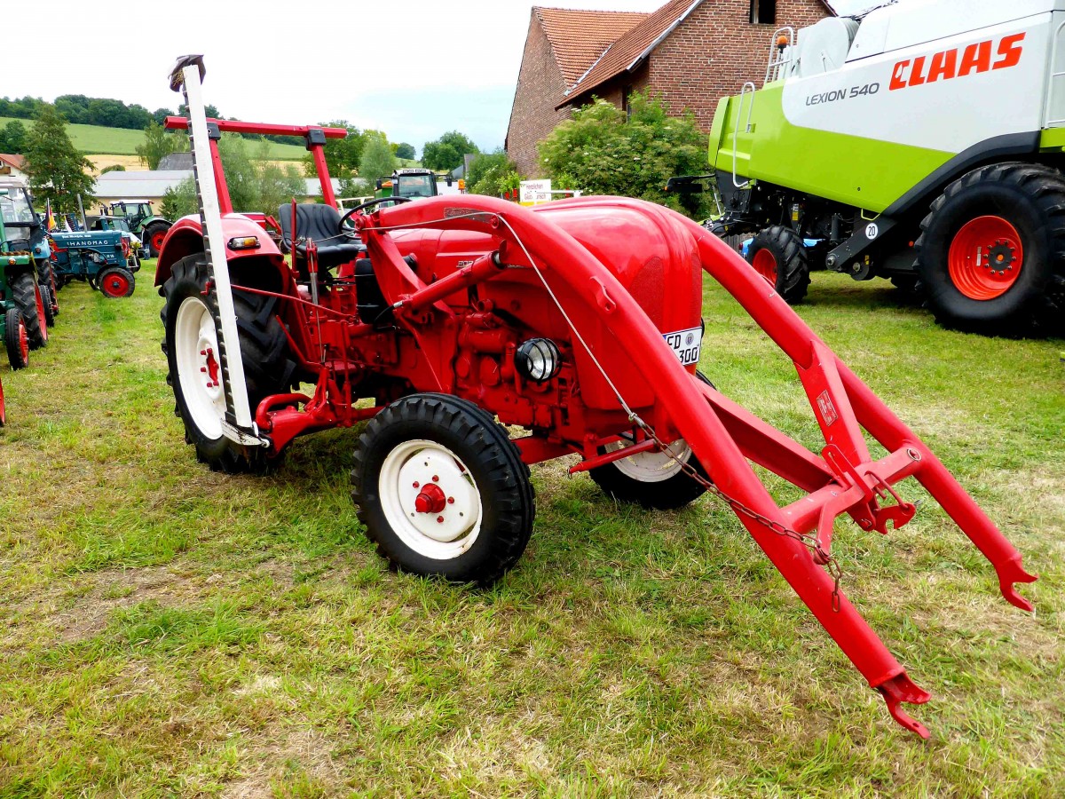 Porsche mit Frontlader, ausgestellt beim Ortsjubiläum von Unterweisenborn im Juni 2014