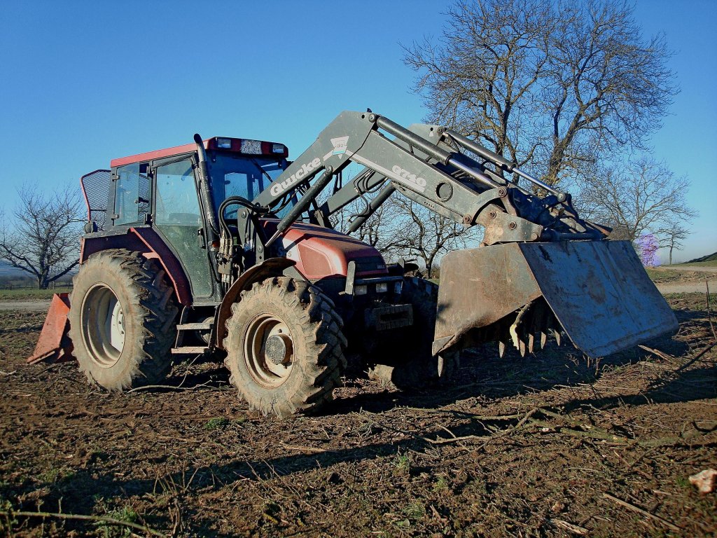 Case CS75, Allradschlepper mit 3-Zyl.Turbo-Diesel und 75PS, der angebaute Frontlader stammt von einer schwedischen Firma, Feb.2011