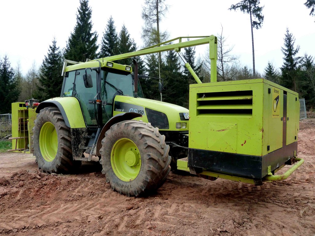 Case CS 150 als mobile Schweißstation steht an der Laugenleitungsbaustelle der Firma K&S in der Gemarkung von 36100 Petersberg-Marbach, April 2013