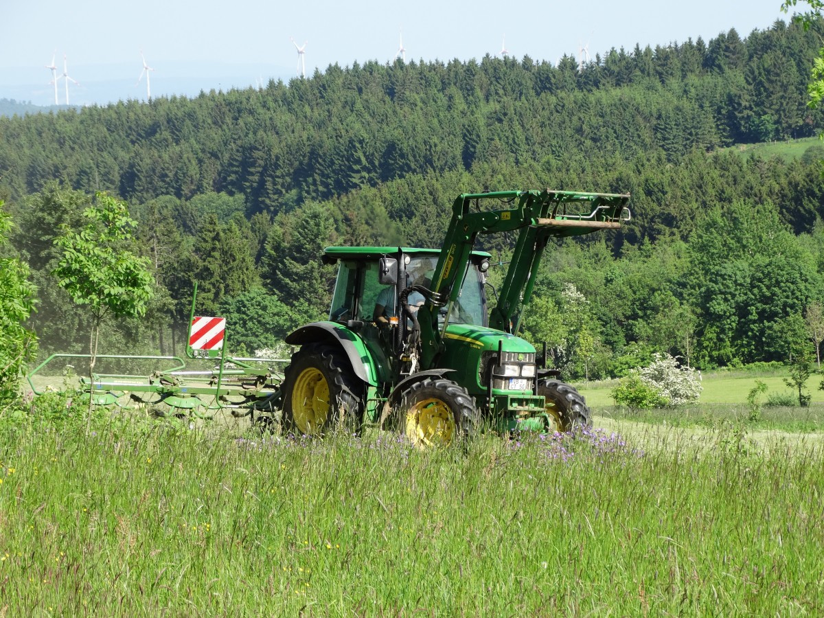 John Deere 5er mit Krone Kreiselschwader am 04.06.15 im Vogelsberg