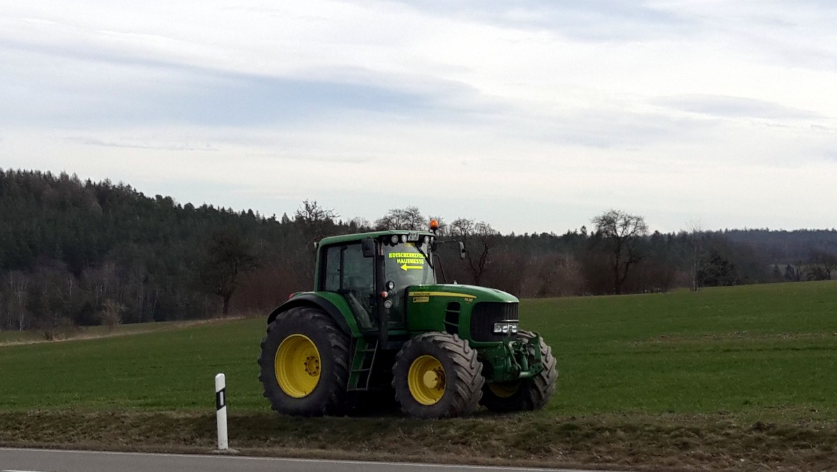 John Deere Traktor der Baureihe 5R auf dem Feld in Zeulenroda-Triebes. 08.03.16