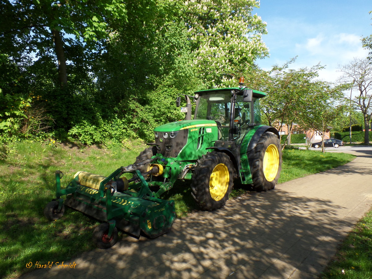 3133 JOHN DEERE 6090 MC am 4.5.2018, beim Rasenmähen in Hamburg-Billstedt /