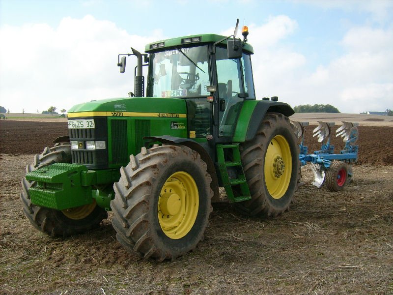 John Deere 7710 steht nach dem Wettpflügen vor seiner Parzelle. Schellenberg 2008
