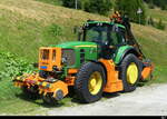 John Deere 7530 mit Spez. Anbau für auf den Geleisen der MGB zu verkehren .. Abgestellt in Oberwald am 23.07.2023