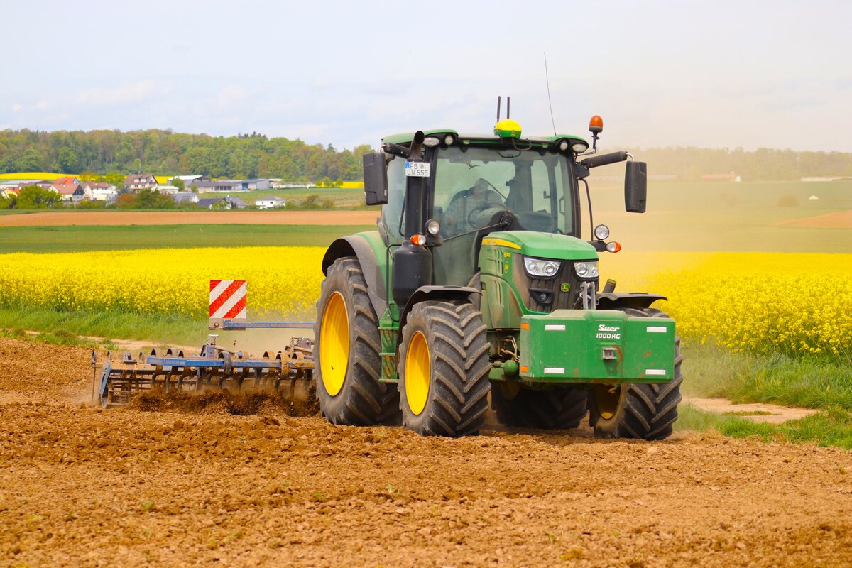 John Deere 6130R mit Köckerling Grubber am 27.04.24 bei Nidderau in der Wetterau