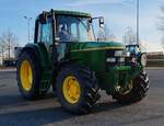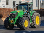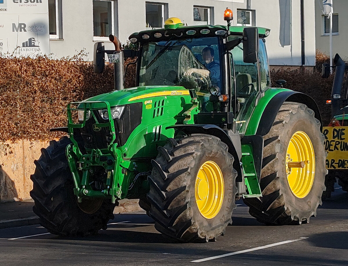 =John Deere 6145 R ist unterwegs in Fulda bei einer der vielen bundesweiten Bauerndemos im Januar 2024