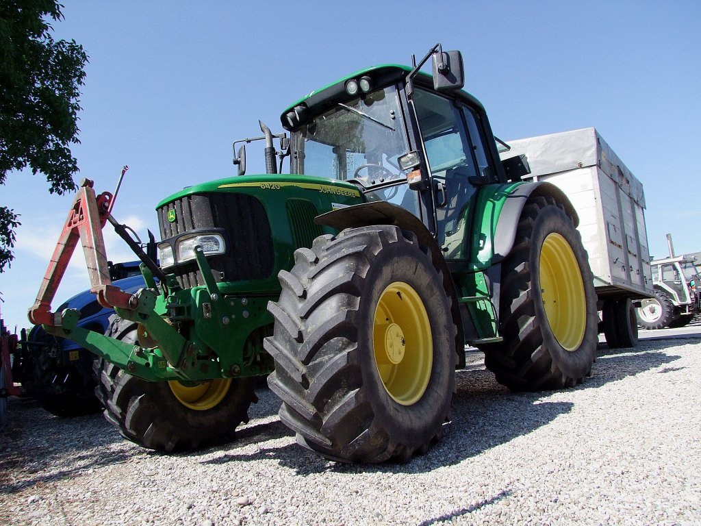 JohnDeere6420, mit einem Einachshänger vor den FIH-Stallungen;110607