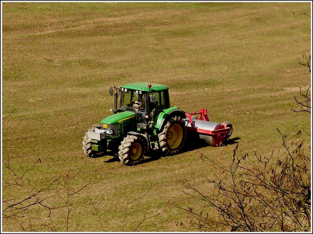 John Deere 6430 beim anrollen einer Rasenfläche gesehen am 22.03.2012.