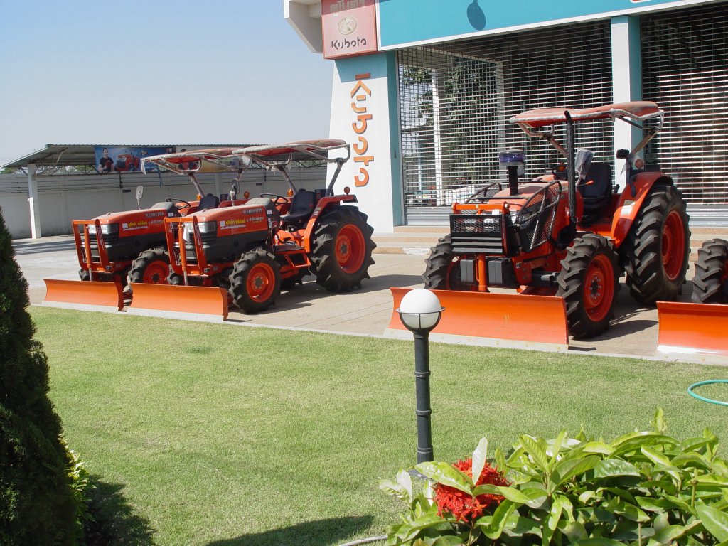 3 Kubota Traktoren: zwei L 4508 Di und ein M 7040 am 09.01.2011 in Buri Ram / Thailand