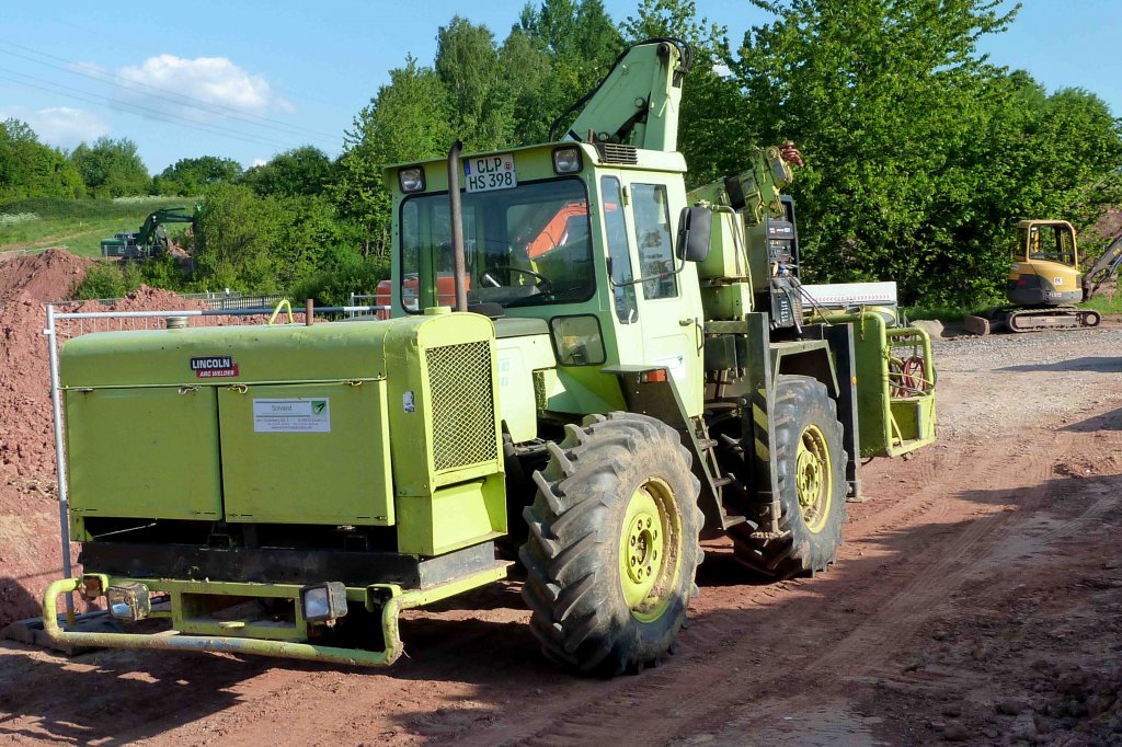MB Trac 1000 als mobile Schweißanlage der Firma "SCHRANDT" an der Laugenleitung von K&S in der Gemarkung von 36100 Petersberg-Marbach, Juni 2013