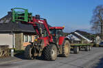 McCormick Traktor mit 3 Mähwerken behangen auf dem Weg zum nächsten Feld. 10.2024