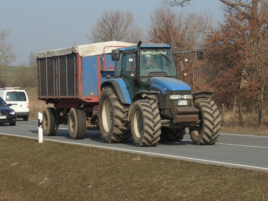 In der Woche brauch man an der B96 nicht lange auf Fahrzeuge warten,so kam mir am 25.März 2010 dieser New Holland-Traktor entgegen.