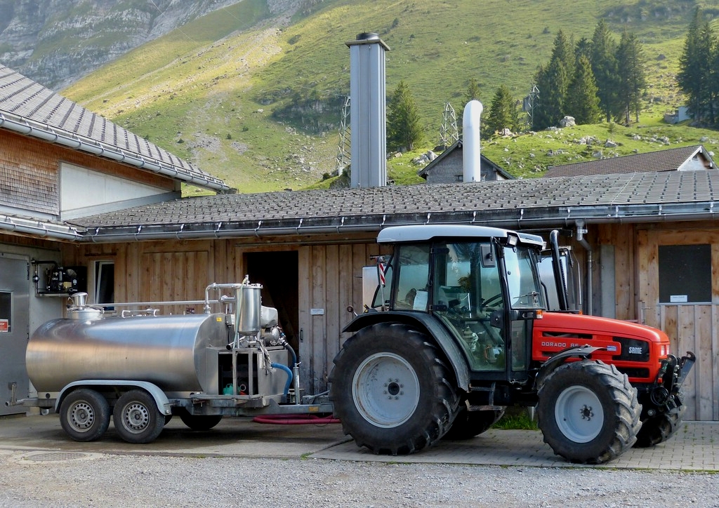 Samme Dorado Traktor mit Milchtankhänger gesehen am 14.09.2012.