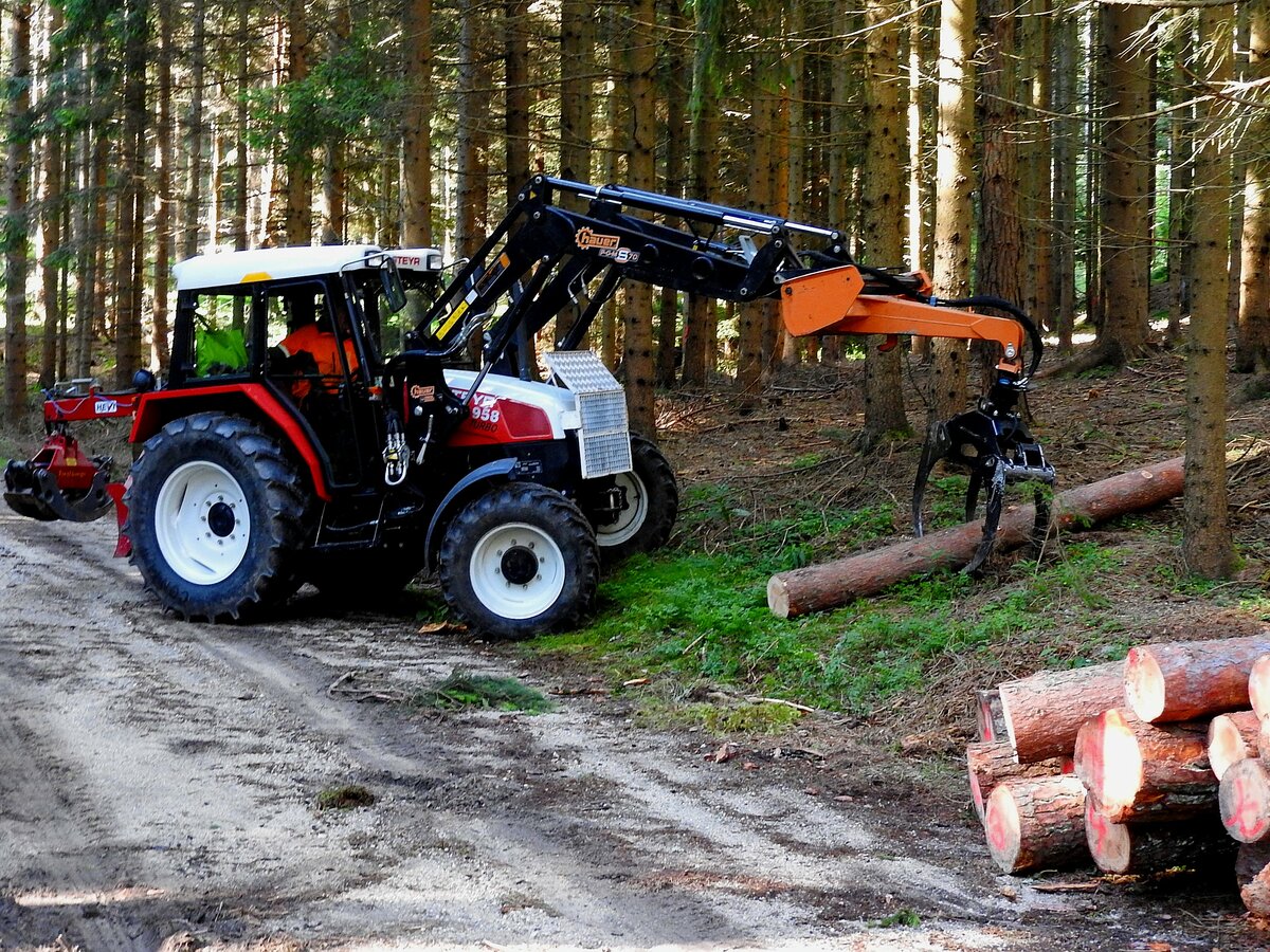 STEYR 958-Turbo,  verrichtet nach einem Sturm die anfallende Waldarbeit; 210710