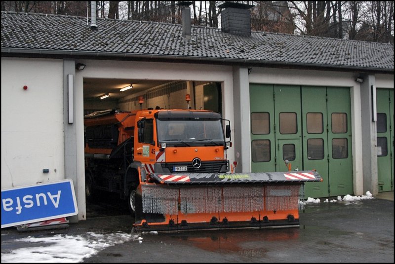 Der Atego 1828 (PALIFT) steht in der Werkstatt... Im gegensatz zum anderen Atego besitzt er ein PALIFT Containerwechselsytsem. Mit dem System lassen sich Streuautomaten bzw. Kippmulde in wenigen Minuten wechseln. (10.02.2009)