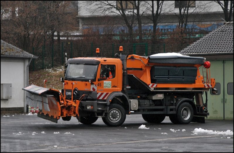 Im Februar 2011 : Mercedes ATEGO 1828 - ein Fahrzeug der "Straßen NRW " mit Sonderaufbau..