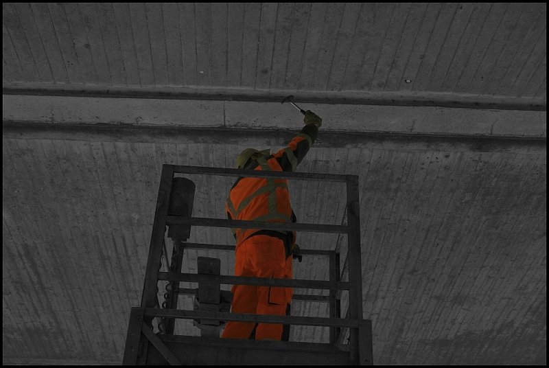Brückenkontrolle... Die Brücken werden auf Schäden z.B Abplanzungen untersucht. Dies erfolgt durch abklopfen mit einem Hammer. Wie die Kontrolle ausgeführt wird, kann man hier sehen.