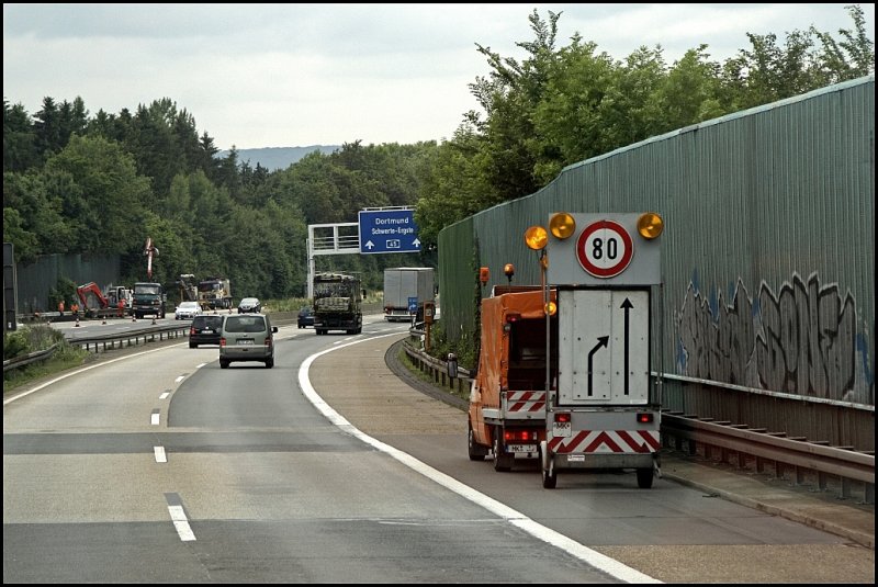 Sprinter 311CDI mit Vorwarntafel beim AK Hagen. (16.06.2009)