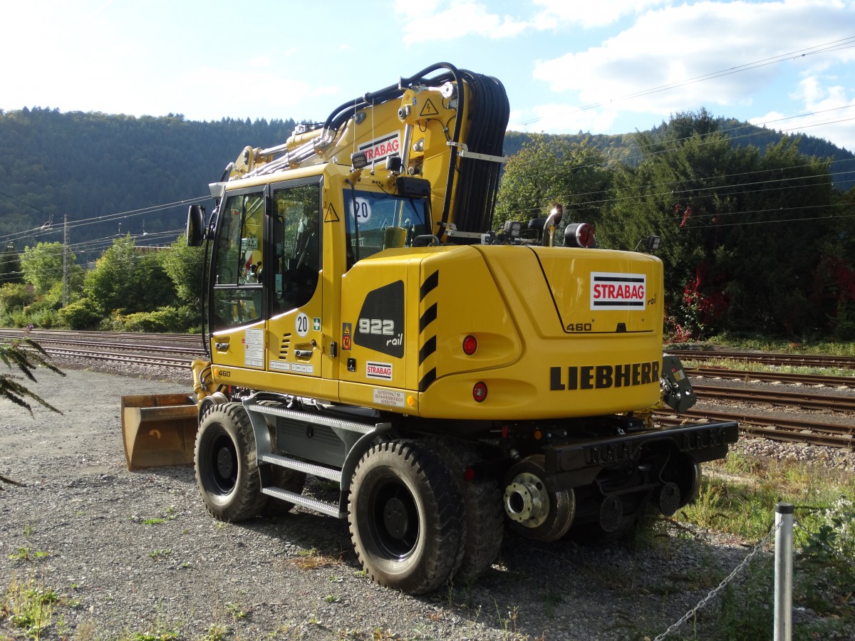 Nagelneuer STRABAG Rail Liebherr 922 Litronic am 27.09.15 in Neckargemünd