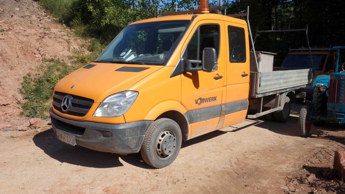 MB Sprinter der Firma "VORWERK" als Doppelkabiner mit Ladefläche an der Midal-Gasleitungstrasse in 36100 Petersberg-Marbach, September 2013
