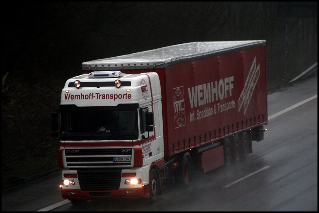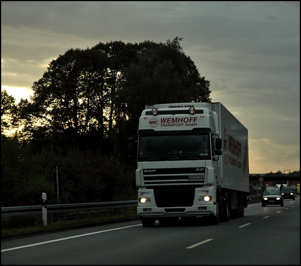 DAF XF95.430 von WEMHOFF Transporte GmbH. Hier bei Warendorf. (03.09.2009)