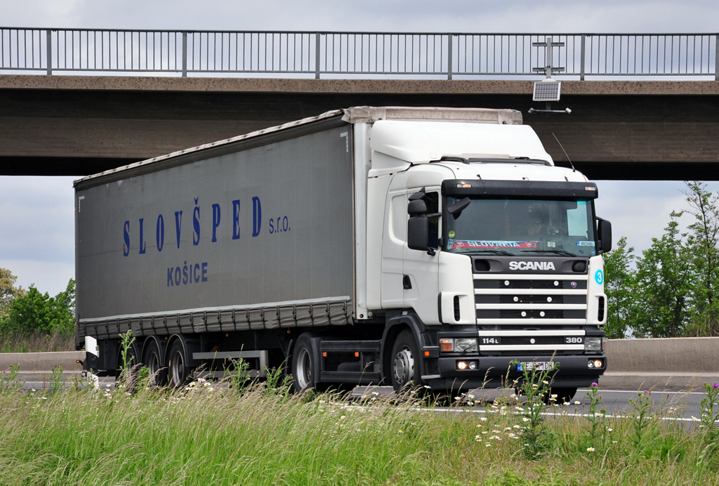 Scania 114L 380  SLOVSPED  auf der A61 bei Miel - 17.05.2011