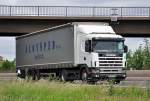 Scania L144L Sattelzug unterwegs in der Stadt Luxemburg. 10.2014