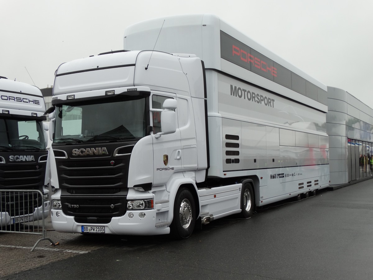 Scania Porsche Motorsport LKW am 03.05.15 auf dem Hockenheimring beim DTM Rennen