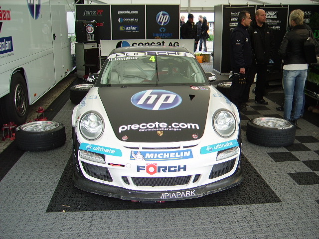 Ein Porsche 911 des Carrera Cups Deutschland beim DTM Rennen auf den Hockenheimring am 17.10.10