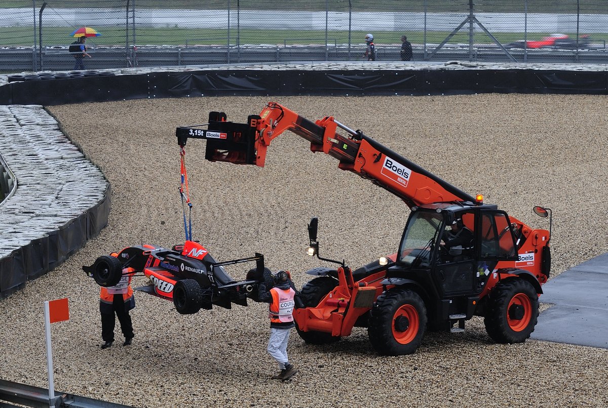 Nr.13 Henrique CHAVES vom Team AVF BY ADRIAN VALLES wurde von der Fahrbahn gedrückt und konnte nicht mehr weiter fahren, Eurocup Formula Renault 2.0, am 16.7.2017 auf dem Nürburgring im Rahmenprogramm der FIA WEC