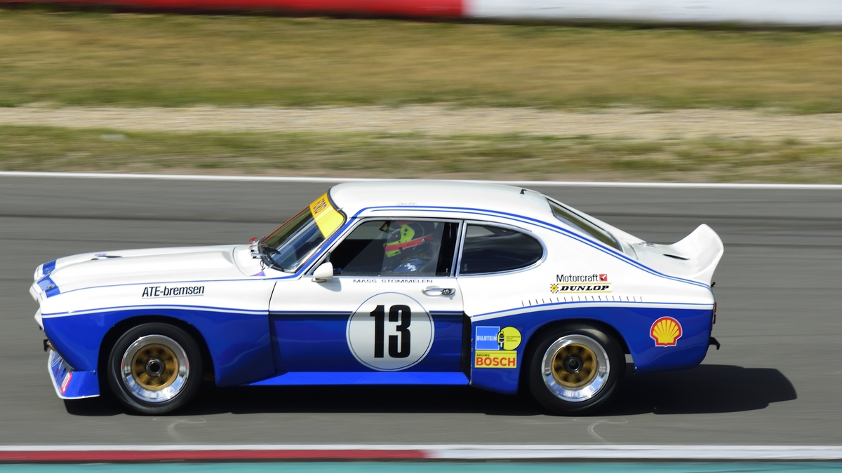 Nr.13 Ford Capri RS 3100 (1975) Revival Deutsche Rennsport-Meisterschaft, 46. AvD-Oldtimer-Grand-Prix 2018, Qualifying der Tourenwagen Classics am 11.Aug.2018 Nachfolger der Deutsche Rennsport-Meisterschaft gilt die DTM (Deutsche Tourenwagen-Meisterschaft).
