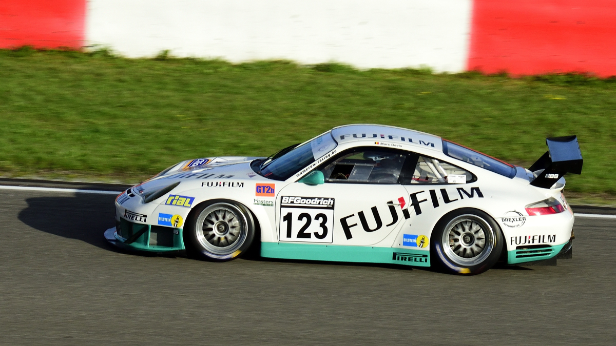 Porsche 996 GT3 RS, beim 47. AvD - Oldtimer Grand Prix, 9.-11. August 2019 / Nürburgring, Rennen 11 Aston Martin Masters Endurance Legends. Aufnahme 10.8.2019 von einer Zuschauer- Tribühne