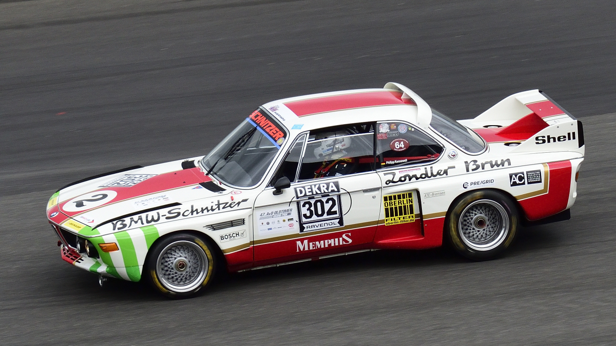 BMW 3.0 CSL Gr.2 (1974)(DRM), Fahrer: Kennewell, Philipp (Amerang). Qualifying zum Rennen 10, Tourenwagen Classic 47. AvD-Oldtimer-Grand-Prix 2019, Samstag 10.08.2019 von der Zuschauertribühne.