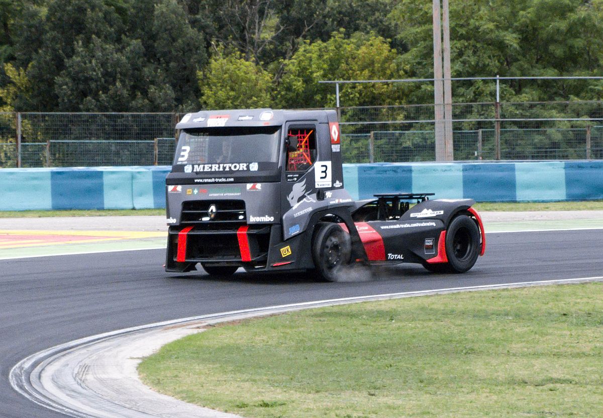 Renault Renn-LKW bremst stark. Aufgenommen am 15.09.2013.